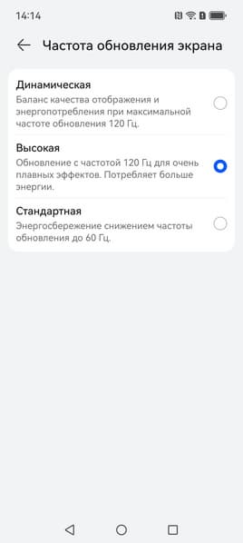 В настройках экрана можно включить режим с повышенной до 120 Гц частотой обновления: