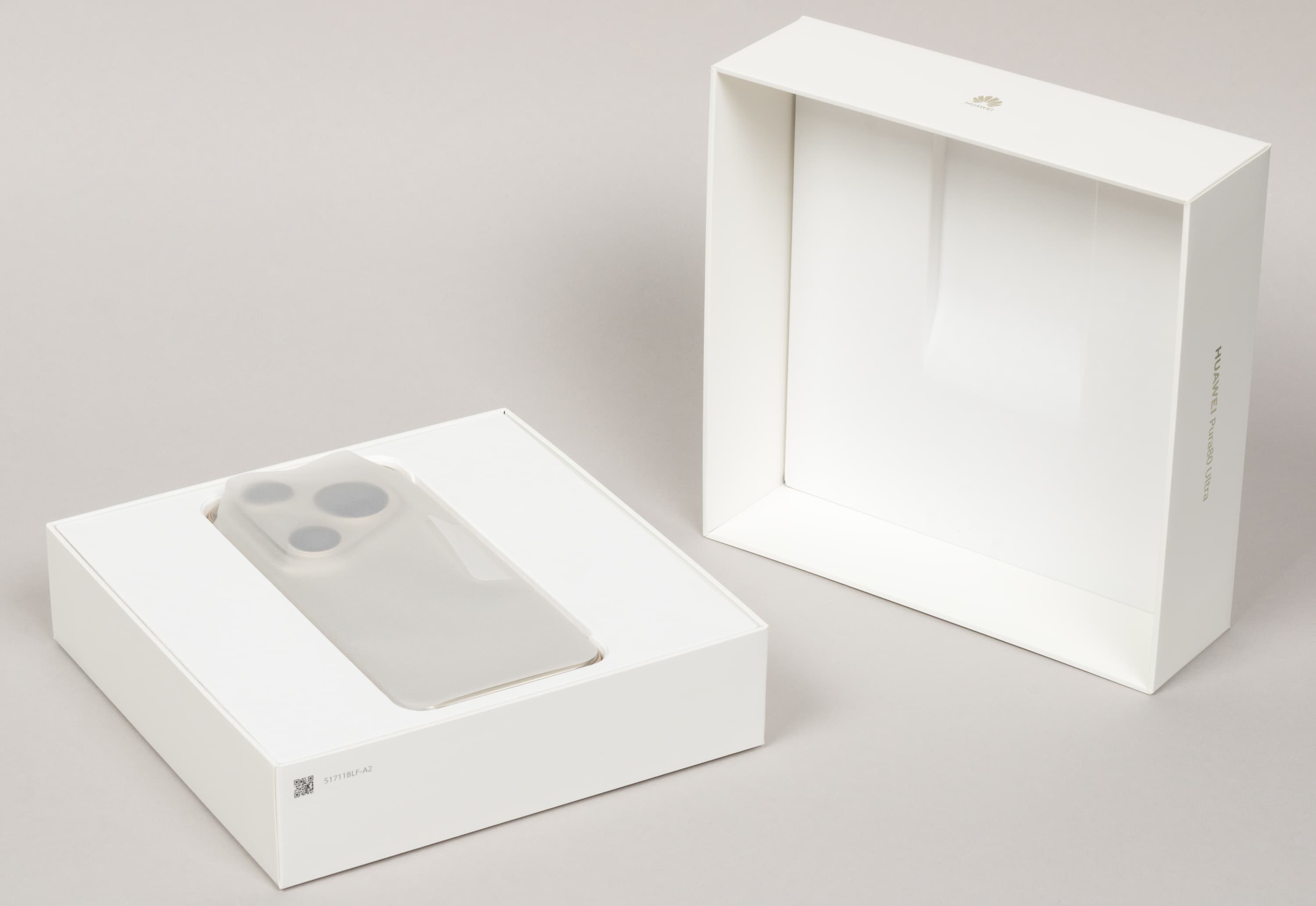 Для смартфона Huawei Pura 80 Ultra упаковку выполнили в нестандартной форме плоской шкатулки, но всё с тем же весьма лаконичным оформлением.