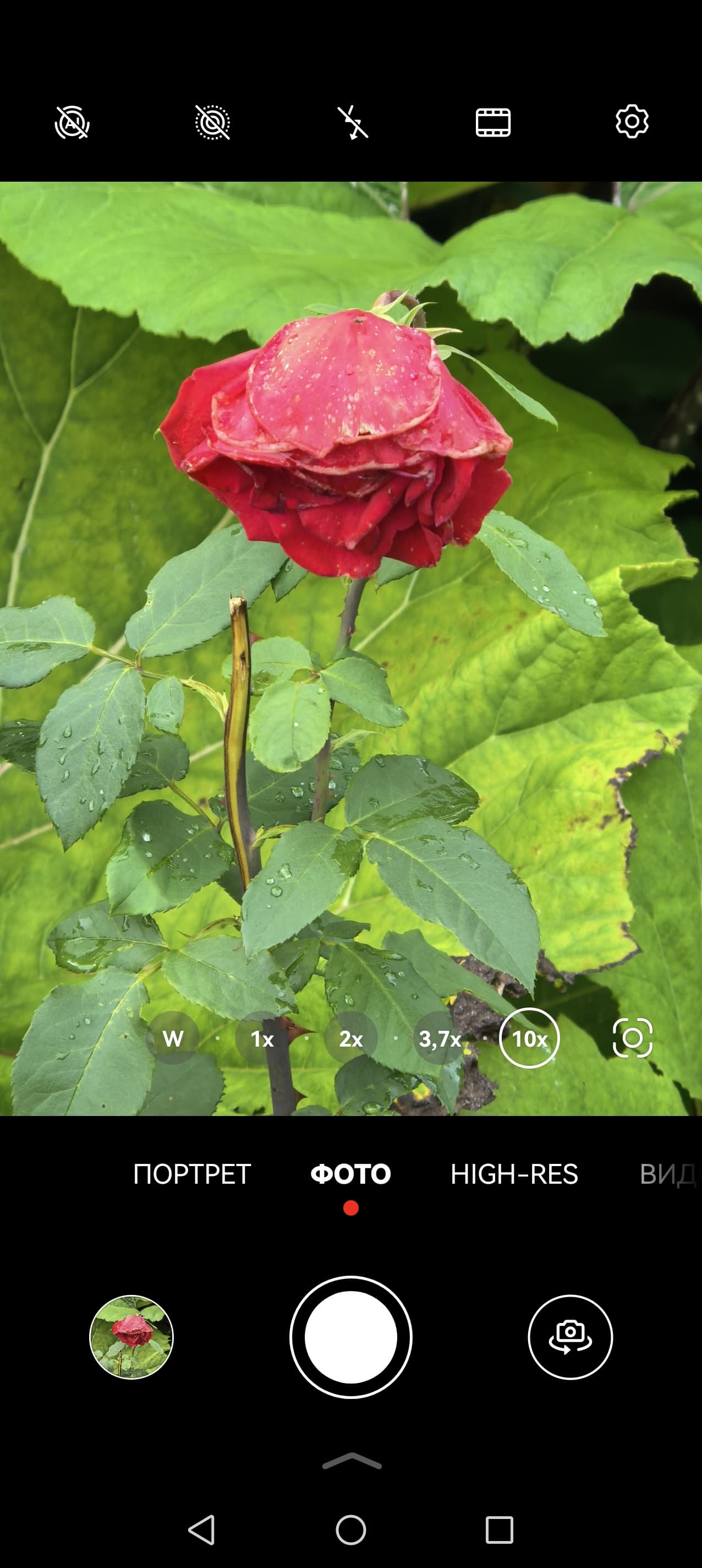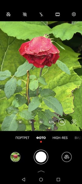 Второй модуль для реализации оптического приближения («увеличения») здесь нетипичный: на один сенсор 50 Мп приходится два физических объектива с различным фокусным расстоянием, реализующих оптический зум 3,7× и 9,4× оптическим зумом (последний в настройках для простоты называется «10×»). Технически реализовано это с помощью мудреного оптического тракта с призмами и микродвигателями. Если повернуть объективы к себе, можно даже заметить, как происходит физическое передвижение сенсора от одного объектива к другому. Эти два объектива объединены в самый большой кружок в блоке.