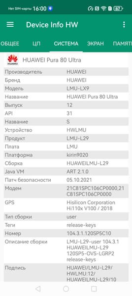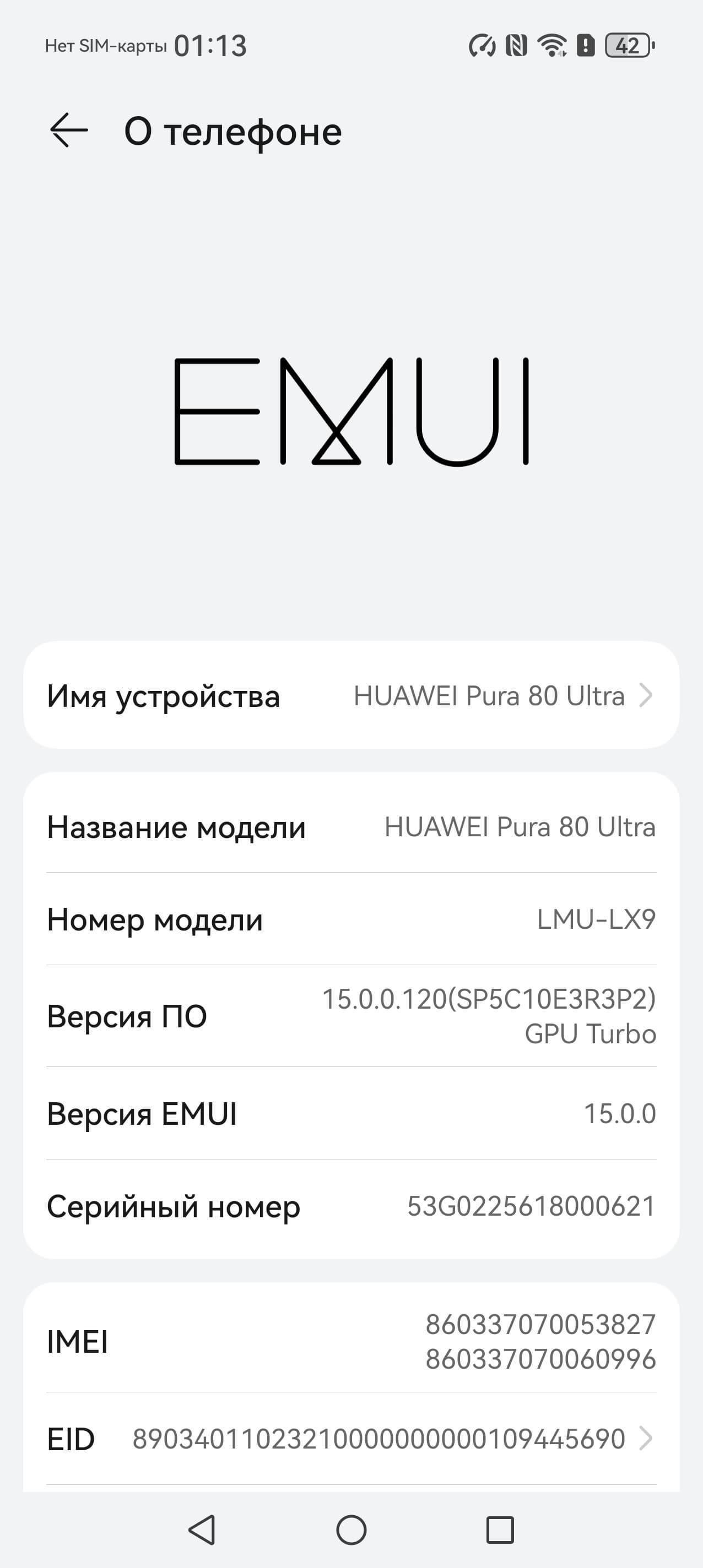 Основные характеристики Huawei Pura 80 Ultra (модель LMU-LX9)