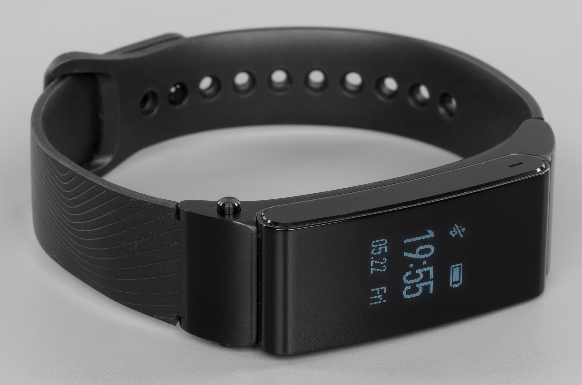 Как и у Huawei TalkBand B1, экран новинки слегка изогнут. Но это едва-едва заметно и не вызывает того вау-эффекта, как в случае с Samsung Gear Fit, где изгиб был действительно сильный.