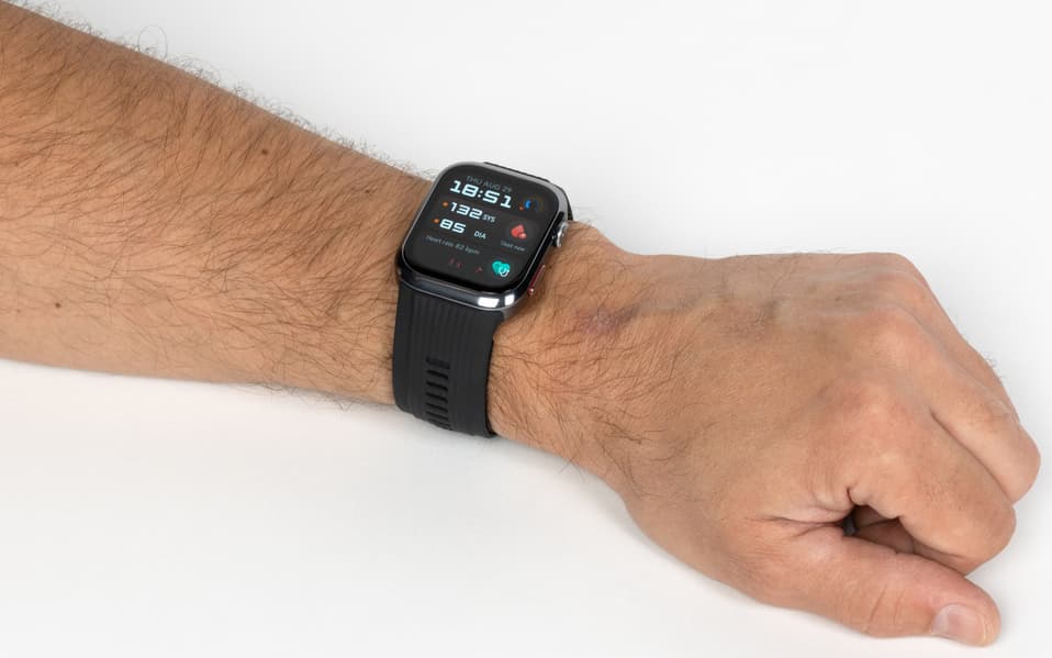 Собственно, если не знать, что это не обычные умные часы, а, фактически, серьезное медицинское устройство (пусть даже официально оно так не позиционируется), то по внешнему виду ни за что не догадаешься. Корпус не слишком толстый — вполне на уровне обычных моделей.