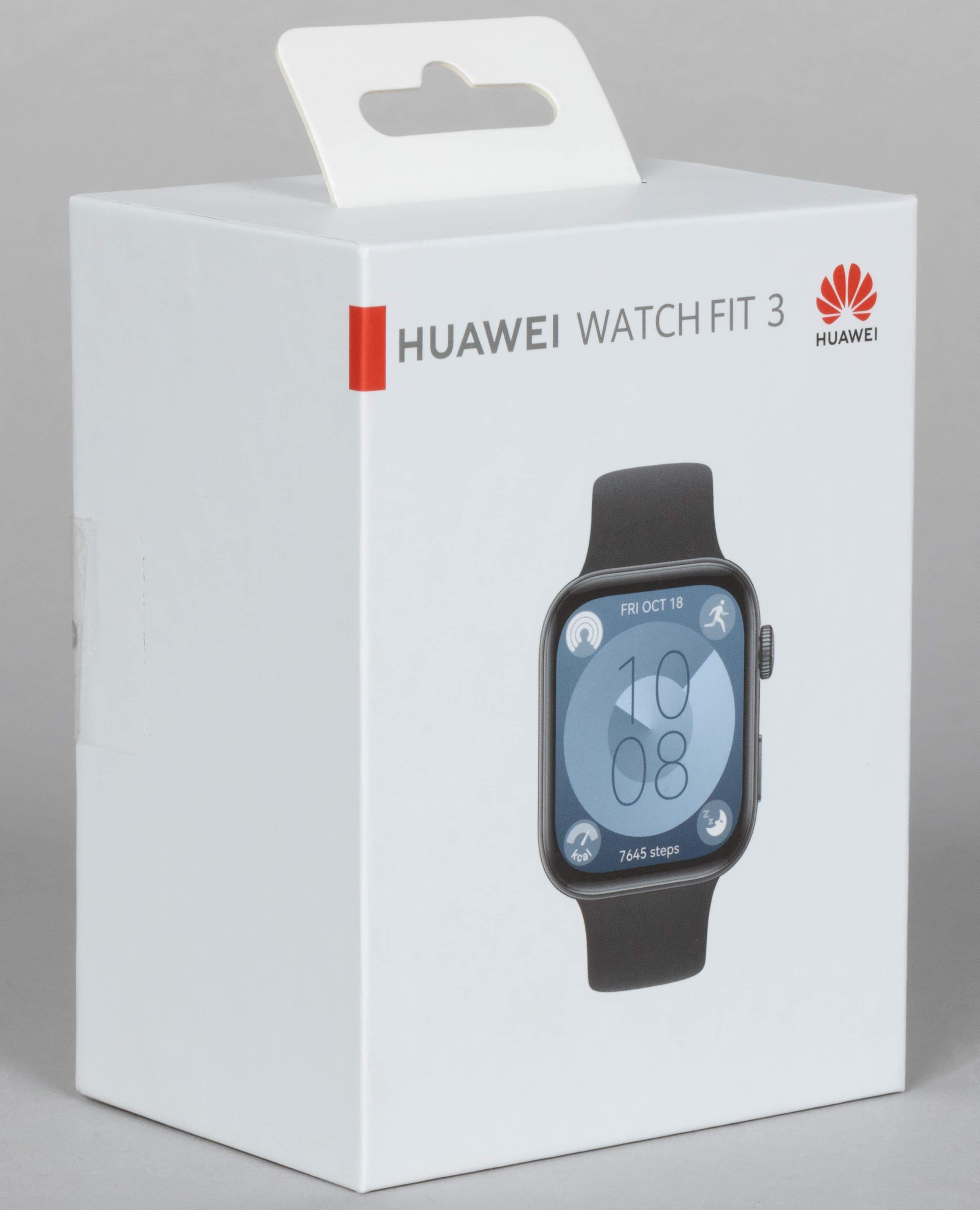 Коробка Watch Fit 3 сравнительно небольшая, в традиционном для Huawei белом оформлении.