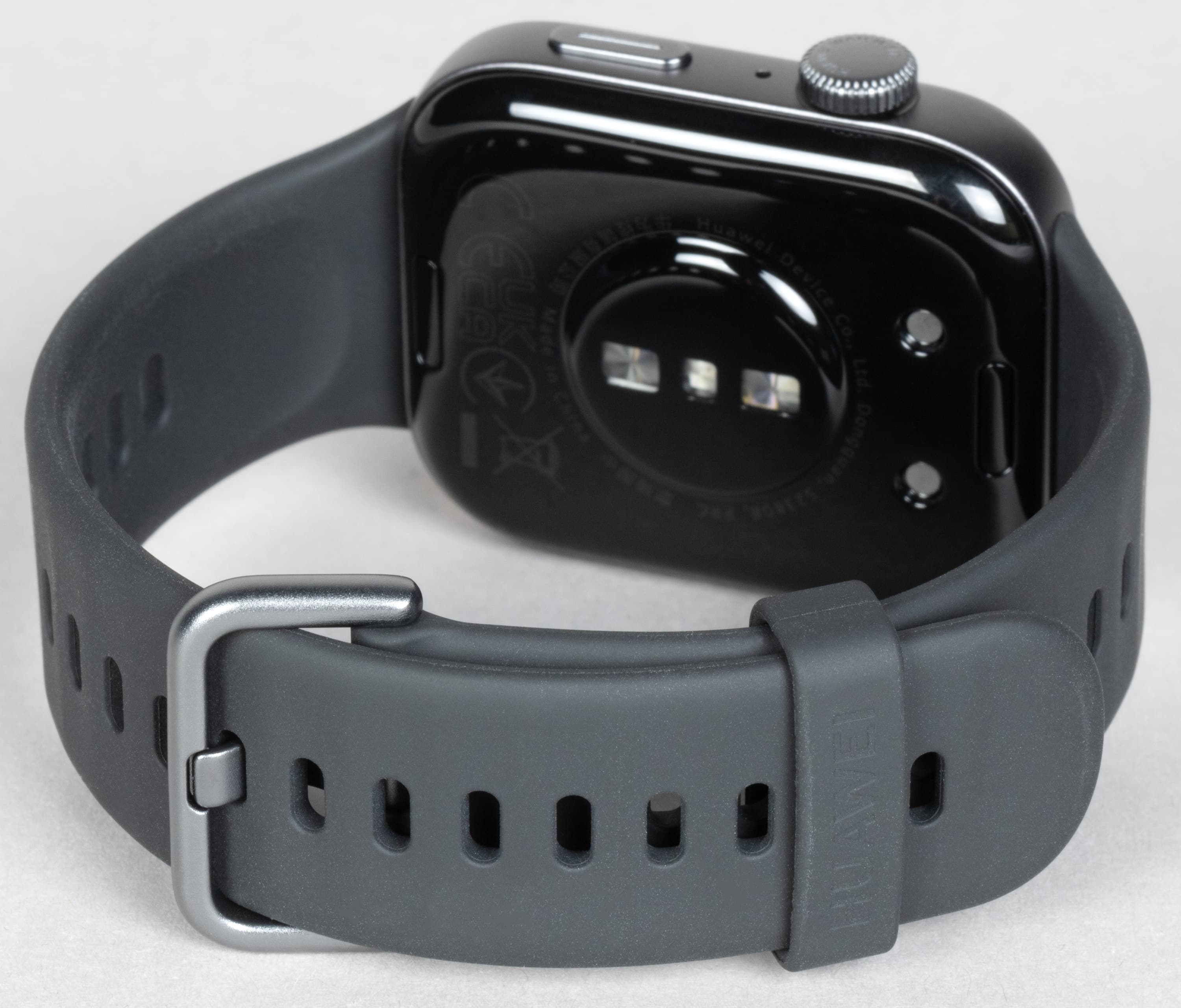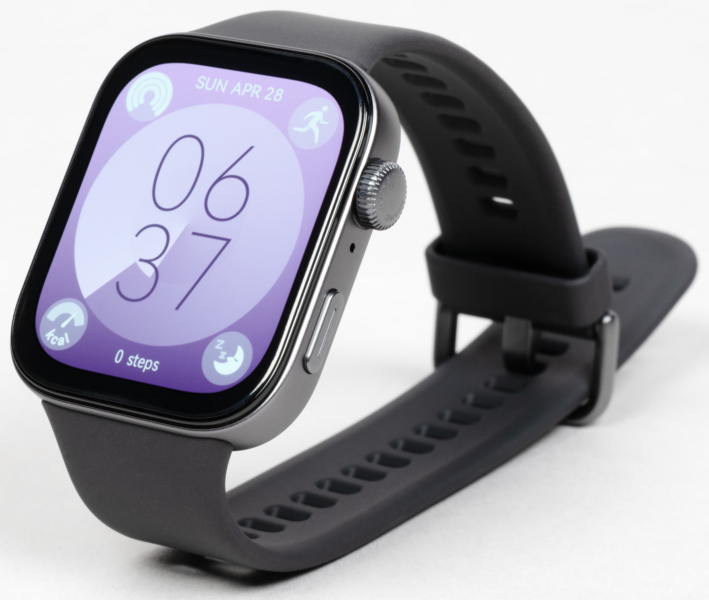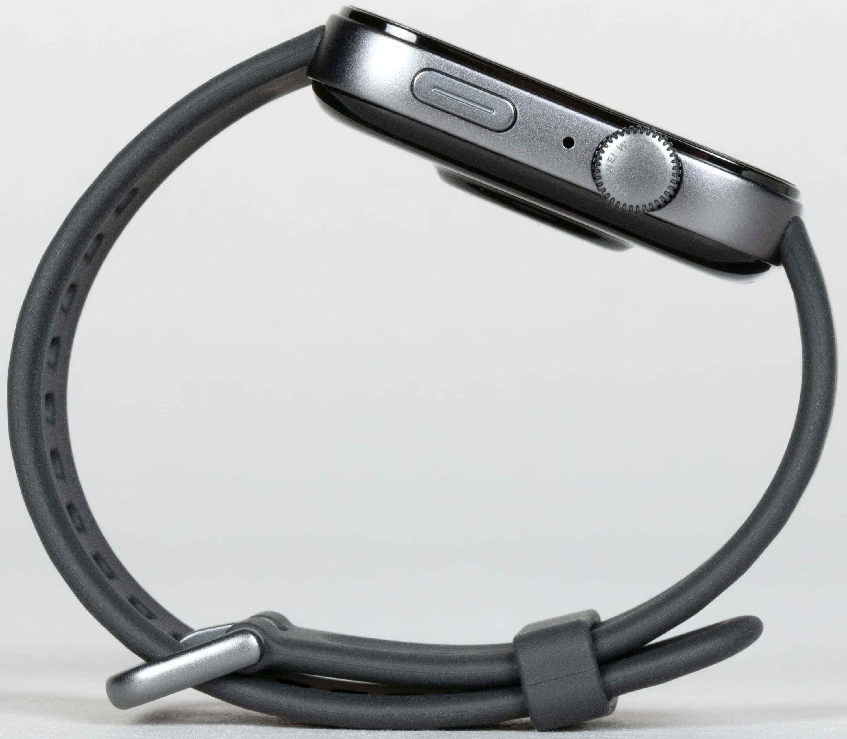 Сразу после анонса многие пользователи стали указывать на явное сходство дизайна часов с Apple Watch. Что ж, не поспоришь: прямоугольный корпус со скругленными углами, две кнопки справа (одна продолговатая, другая круглая, с возможностью нажатия и прокрутки)... И даже ремешок здесь крепится внешне очень похожим образом.