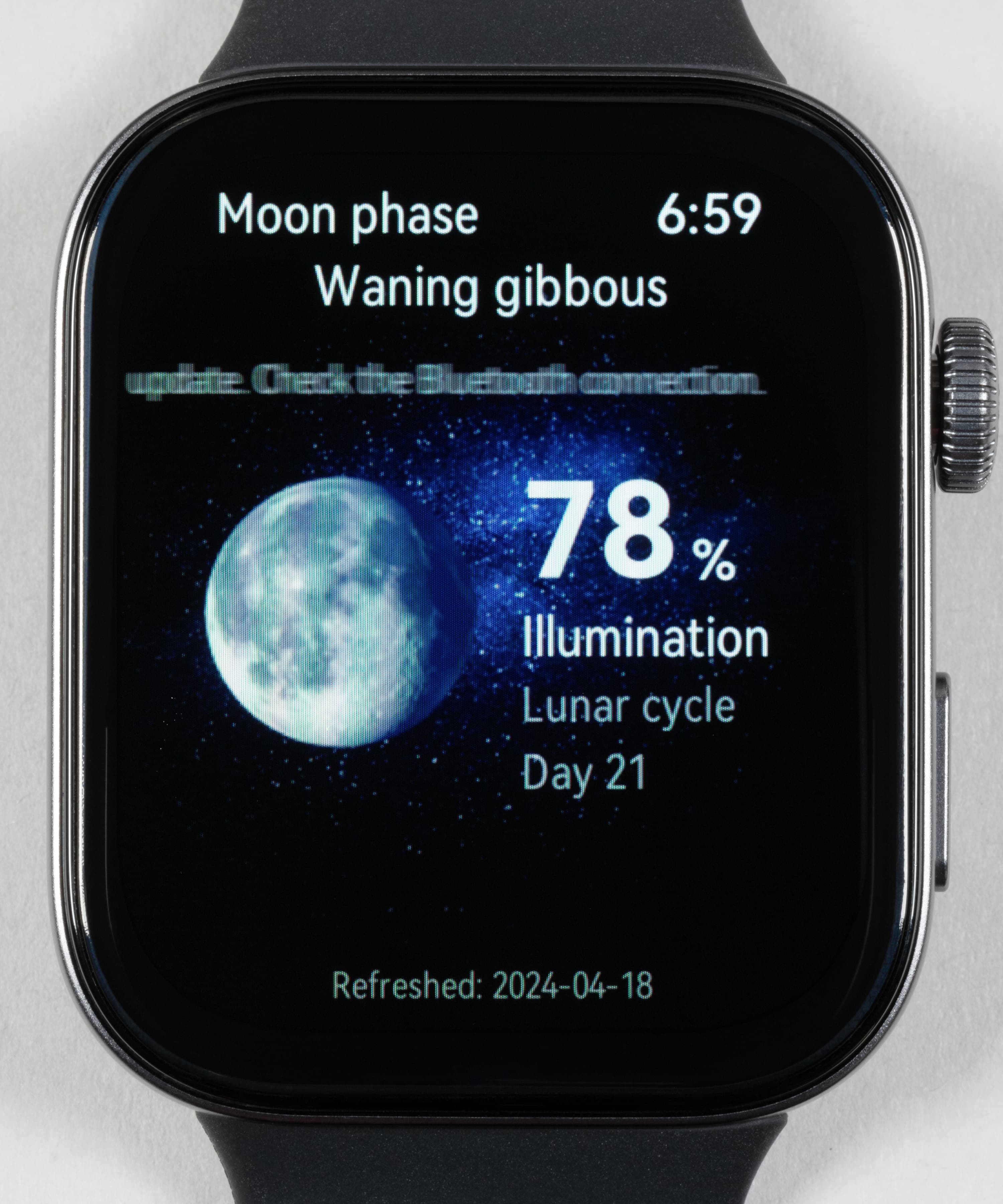 Часы доступны в единственном размере: с экраном 1,82″. Он прямоугольный. Разрешение — 480×408, что обеспечивает плотность точек на дюйм 347 ppi — показатель, делающий картинку гладкой и исключающий возможность рассмотреть без специальных приспособлений отдельные пиксели.
