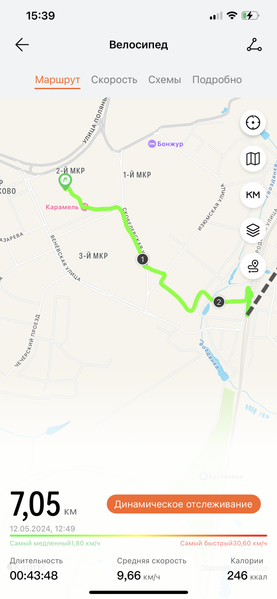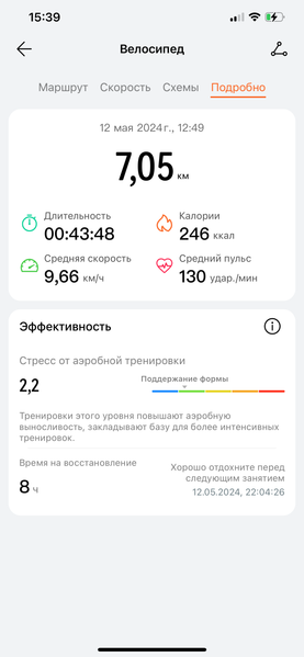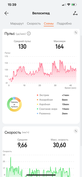 Но зато к статистике по итогу поездки вопросов нет. Устройство вполне корректно фиксирует скорость и пульс, отмечает маршрут на карте, подсчитывает сброшенные калории.