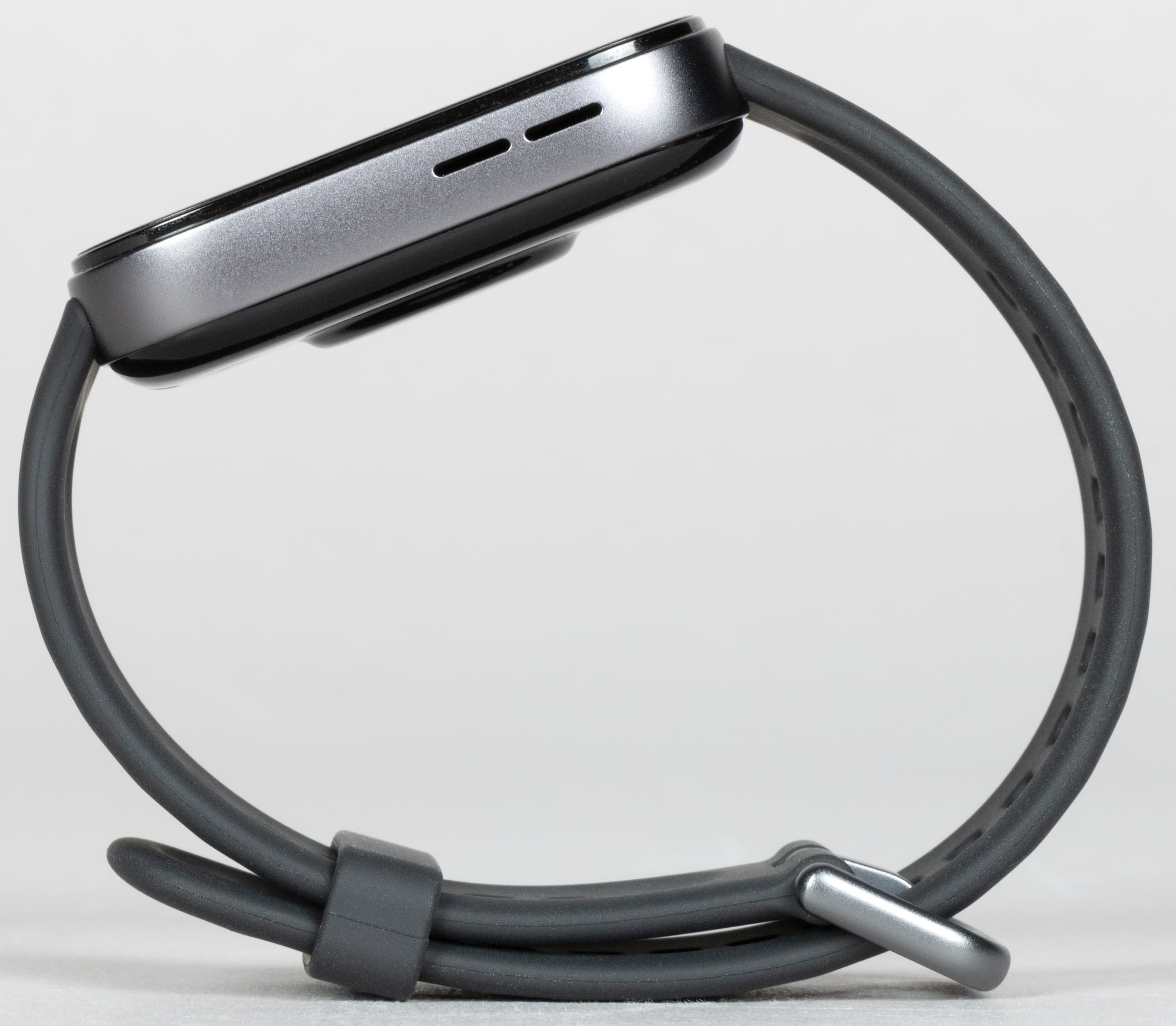 Между кнопками расположено отверстие микрофона, а на противоположной грани — прорези для динамика. Возможность использовать часы для ответов на звонки — совсем нелишняя, поэтому приветствуем ее появление в устройстве, ориентированном в первую очередь на фитнес.