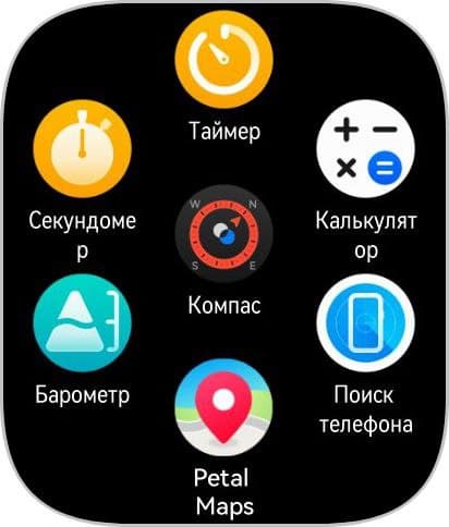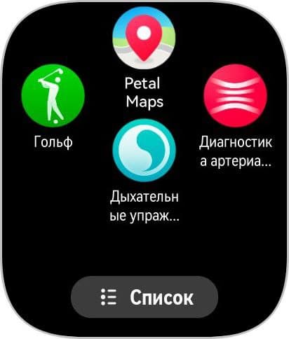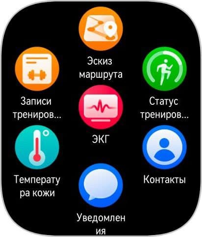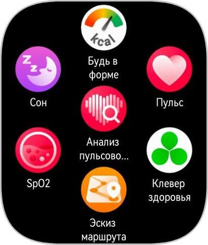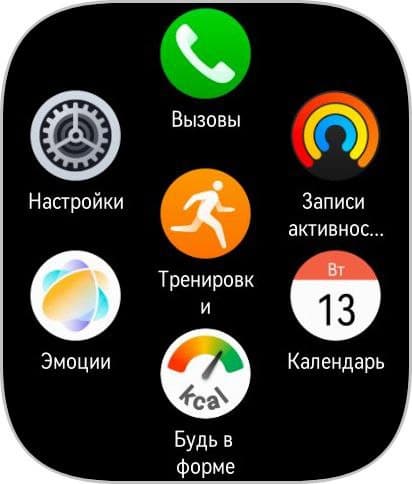 Функциональность кнопок идентична Apple Watch, вплоть до того, что колесико может увеличивать (то есть как бы приближать) иконки приложений в основном меню. При этом вы можете выбрать удобный для себя вариант отображения иконок — сеткой или вертикальным списком. Продолговатая кнопка по умолчанию открывает меню тренировок, но здесь ее можно перепрограммировать на многие другие задачи.