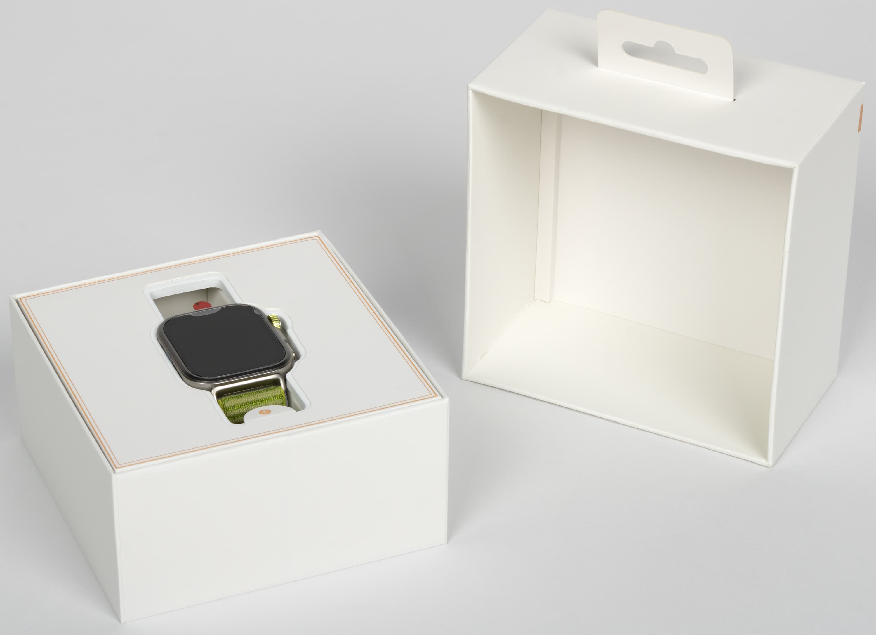 В обоих случаях часы располагаются в картонной прорези, они надеты на мягкий держатель и надежно защищены от возможных ударов при транспортировке.