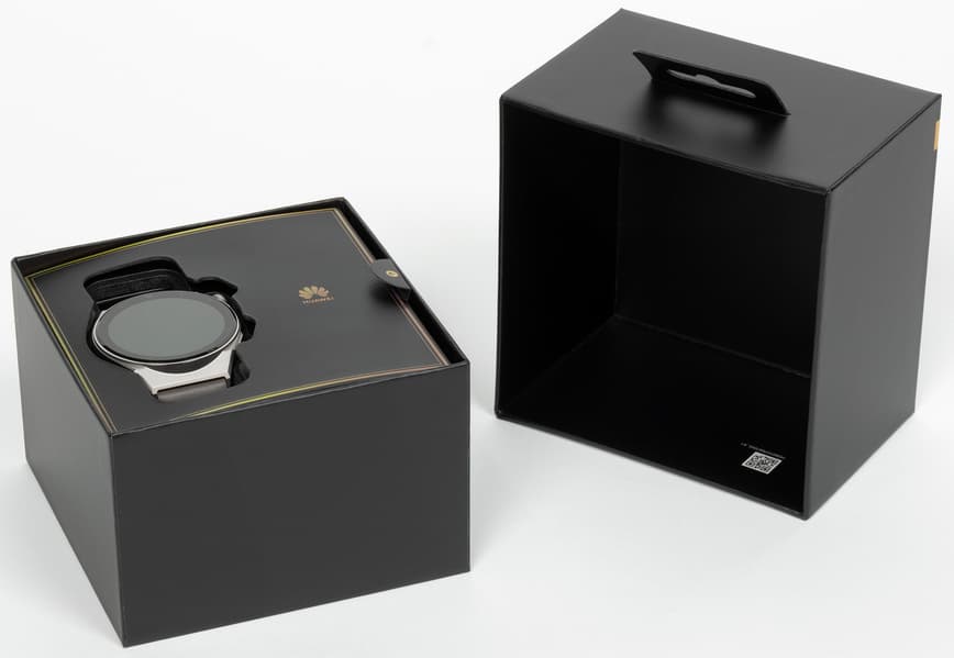 Внутри коробки часы помещены в картонную прорезь и, следовательно, надежно защищены со всех сторон, так что риск повреждения при транспортировке минимален. Заметим, что то же справедливо и для других моделей линейки, никаких отличий от Huawei Watch 3 и Watch 3 GT здесь нет.