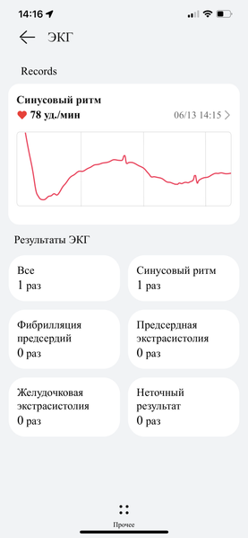 Особенность этой модели, с которой мы прежде в часах Huawei не встречались — измерение ЭКГ. Ранее мы тестировали эту возможность на Apple Watch Series 7 и Samsung Galaxy Watch4. Теперь давайте посмотрим, как это происходит здесь, и сравним результаты как с конкурентами, так и с профессиональным медицинским прибором, который использовала бригада скорой помощи (дело было год назад, но за год вряд ли могли произойти серьезные изменения).