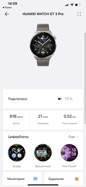 Мы уже хвалили линейку Huawei Watch за продолжительность автономной работы, и Watch GT 3 Pro — не исключение. Да, при активном использовании устройство разрядилось у нас за шесть дней — это немного меньше заявленного. Но, повторимся, мы использовали и тренировки, и автоматическое измерение всех возможных параметров (кислород в крови, пульс, температура кожи), и общение по громкой связи (пусть и недолгое), и, конечно, уведомления. Для таких условий это прекрасный результат — сравните с теми же Apple Watch, которые живут при аналогичной интенсивности меньше двух суток. Разница втрое!