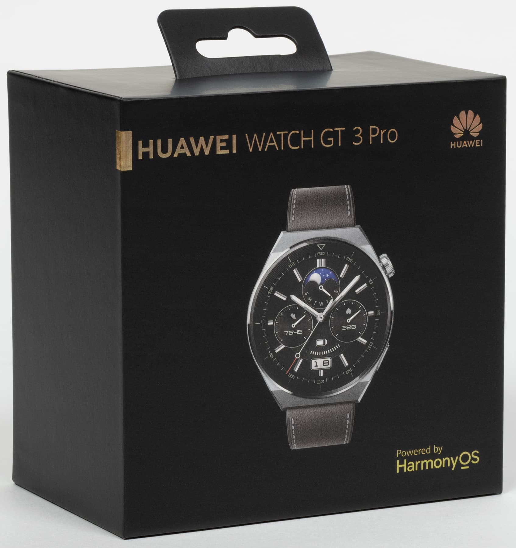 Часы поставляются в строгой черной коробке с надписями золотистым тиснением, что ассоциируется с солидными дорогими устройствами.