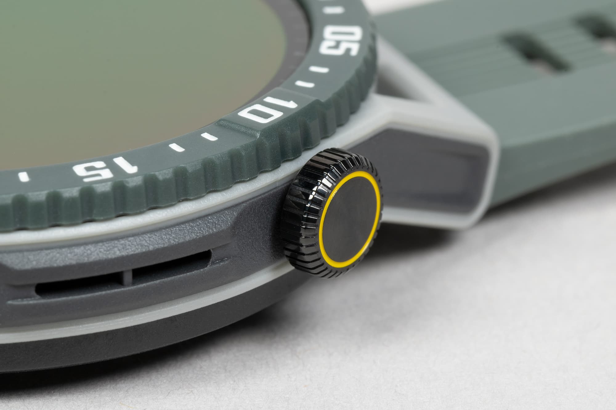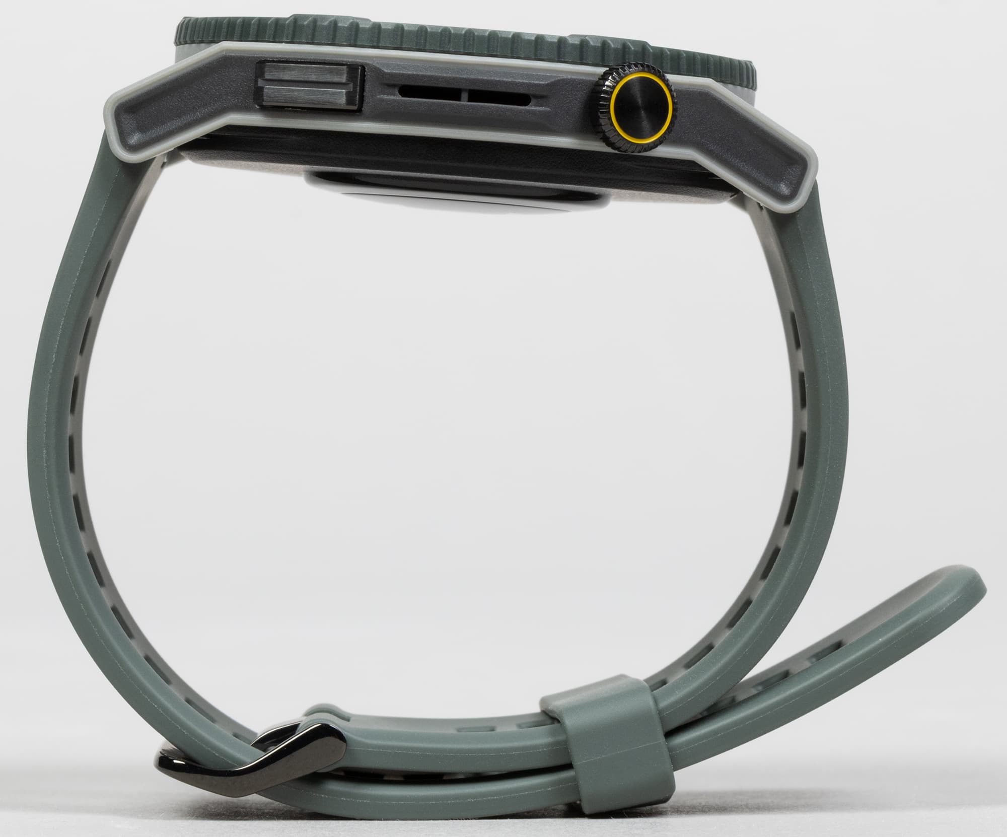 Часы продаются в двух цветовых вариантах: черном и сером (формально это темно-зеленый цвет, но ненасыщенный). Ни по размеру дисплея, ни по материалам отличий между ними нет. У нас на тестировании была серая модель.
