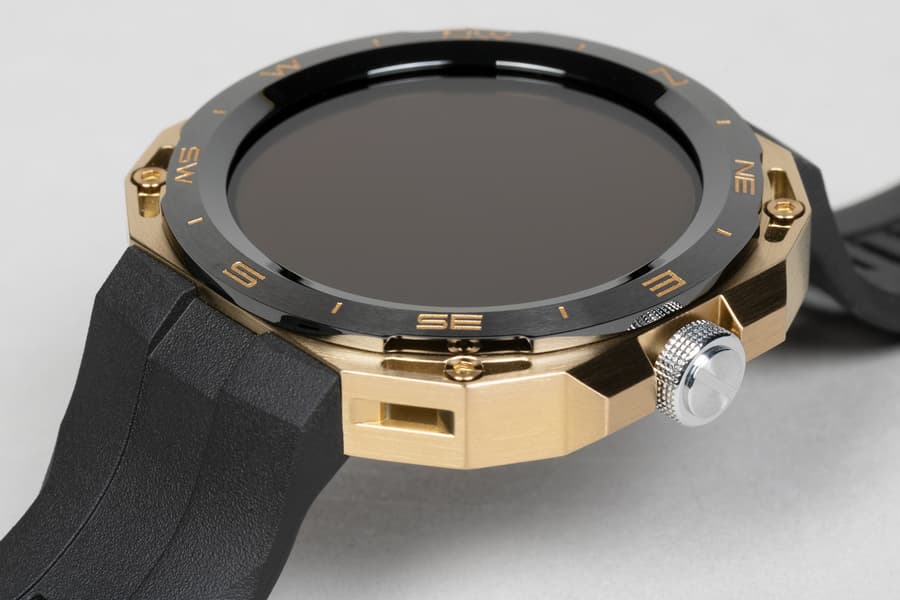 Часы Watch GT Cyber выпускаются в двух видах: Urban в золотистом стальном корпусе и Sport с корпусом из композитного материала. У нас на тестировании была первая модель, о ней и пойдет речь.