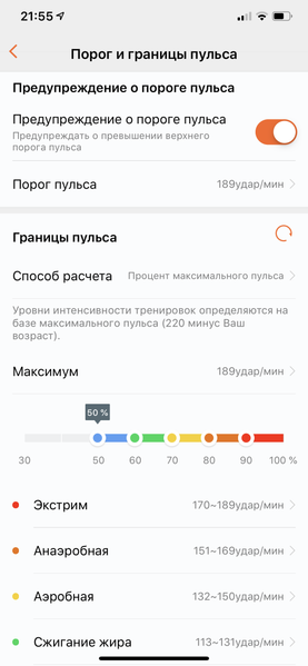 Что касается тренировок, здесь стоит отметить довольно широкий их выбор (например, плавание есть в бассейне и в водоеме; бег и ходьба — несколько видов). Также в качестве плюса отметим возможность предупреждения в случае превышения заданного порога пульса во время занятий.