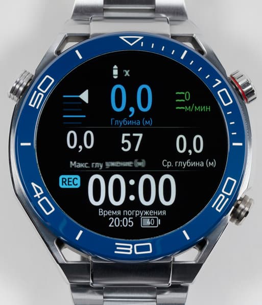 Разумеется, во время погружения управление часами осуществляется с помощью кнопок (здесь как раз третья кнопка очень кстати), а на экране может показываться направление, глубина, температура воды, скорость, компас и другие полезные параметры. У нас, увы, не было возможности опробовать это на практике, да и для такого теста требуются все-таки профессиональные дайверы (или хотя бы опытные любители). Но выглядит это очень многообещающе.