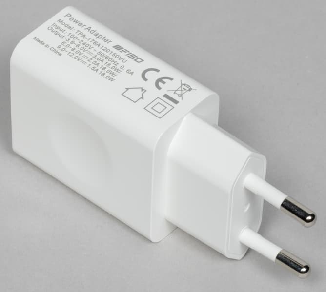 В комплекте со смартфоном идет соединительный кабель USB-C и сетевое зарядное устройство с выходной мощностью 18 Вт.