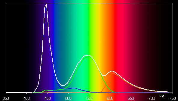 Спектры показывают, что светофильтры матрицы в умеренной степени подмешивают компоненты друг к другу: