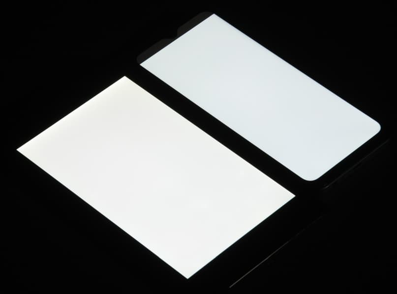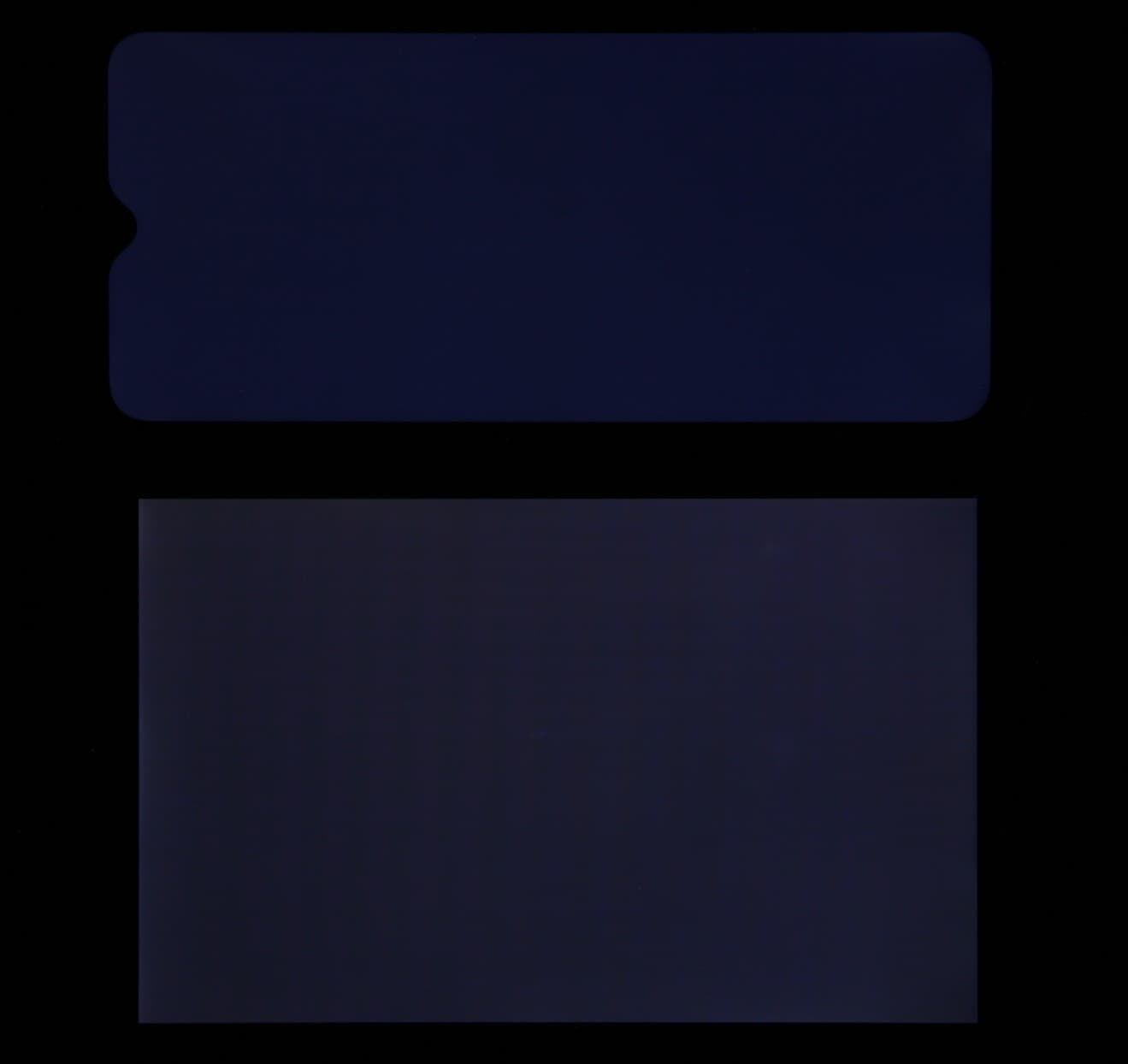При перпендикулярном взгляде равномерность черного поля хорошая (для наглядности яркость подсветки на смартфоне установлена на максимум):