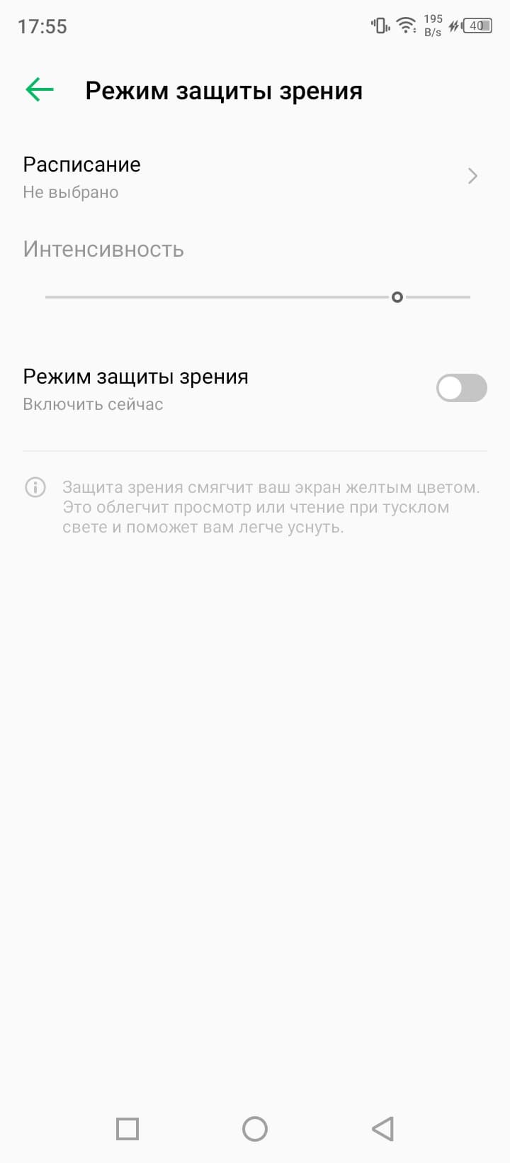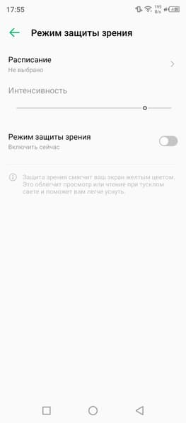 Также присутствует настройка, позволяющая снизить интенсивность синей компоненты.