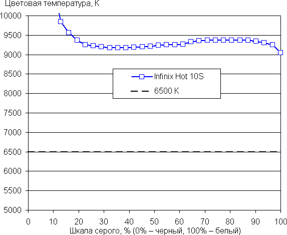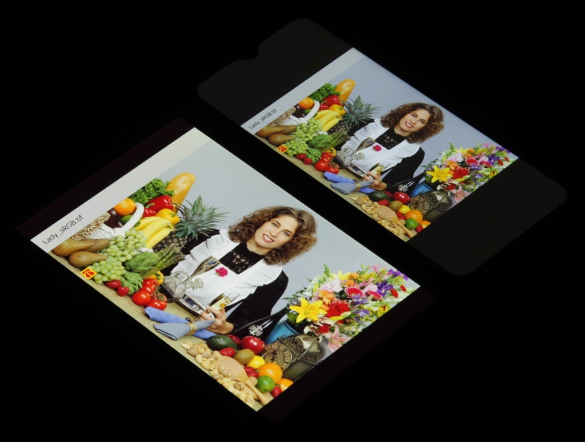 Видно, что цвета не сильно изменились у обоих экранов, но у Infinix Hot 10S контраст уменьшился в большей степени из-за сильного высветления черного и большего снижения яркости.