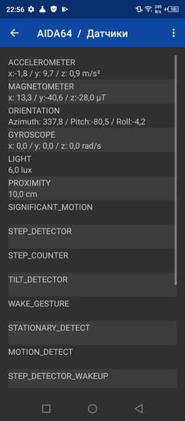 - Датчики приближения и освещения, магнитного поля, акселерометр, гироскоп