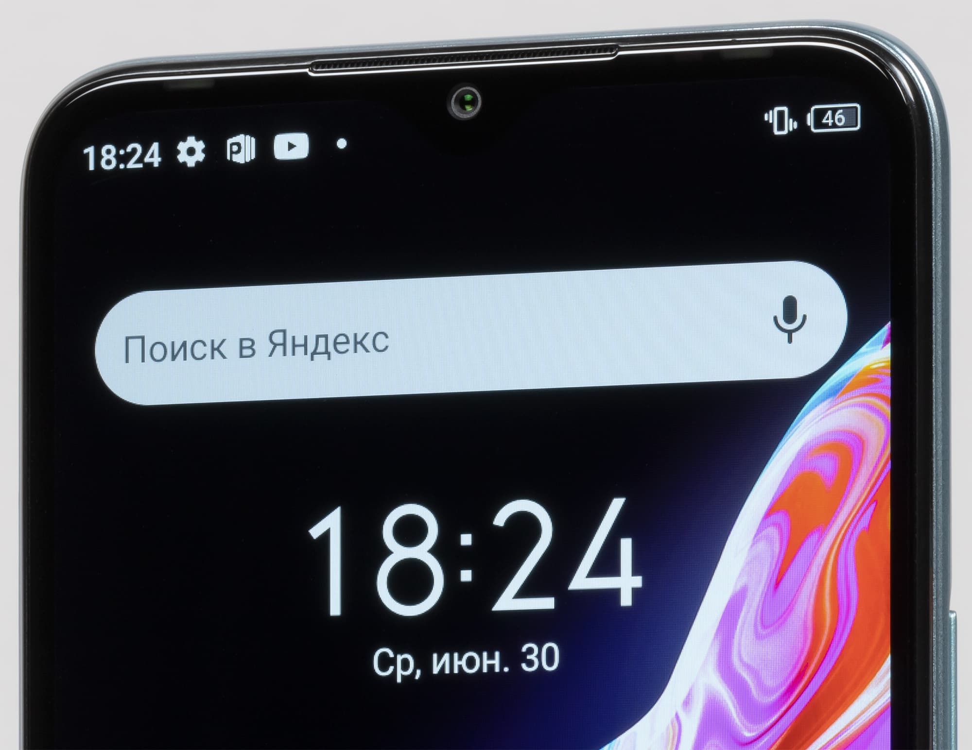 Фронтальная камера спрятана за каплевидным вырезом в матрице экрана, расположенным прямо по центру. Отрадно, что присутствует яркий светодиодный индикатор событий, также работающий в качестве фронтальной вспышки для селфи-камеры.