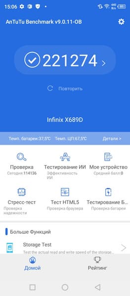 | AnTuTu (v9.x) (больше — лучше) | 221274 | 283847 | 271388 | 219907 | 300841 |