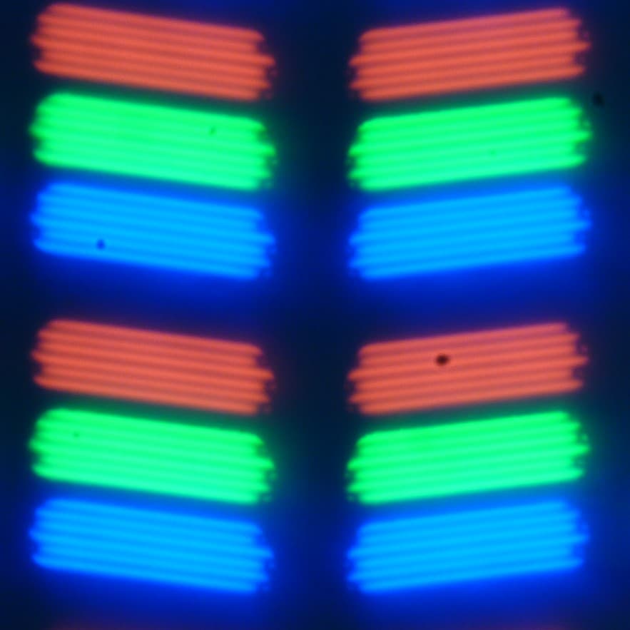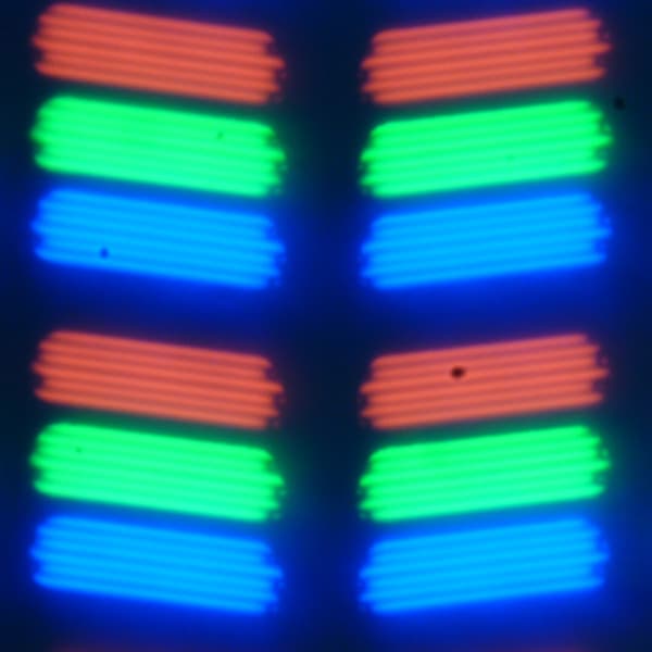 В данном смартфоне используется матрица типа IPS. Микрофотографии демонстрируют типичную для IPS структуру субпикселей: