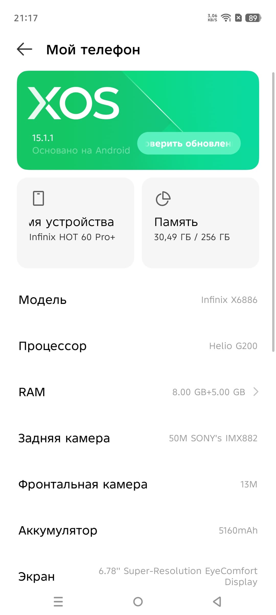 Основные характеристики Infinix Hot 60 Pro+ (модель X6886)