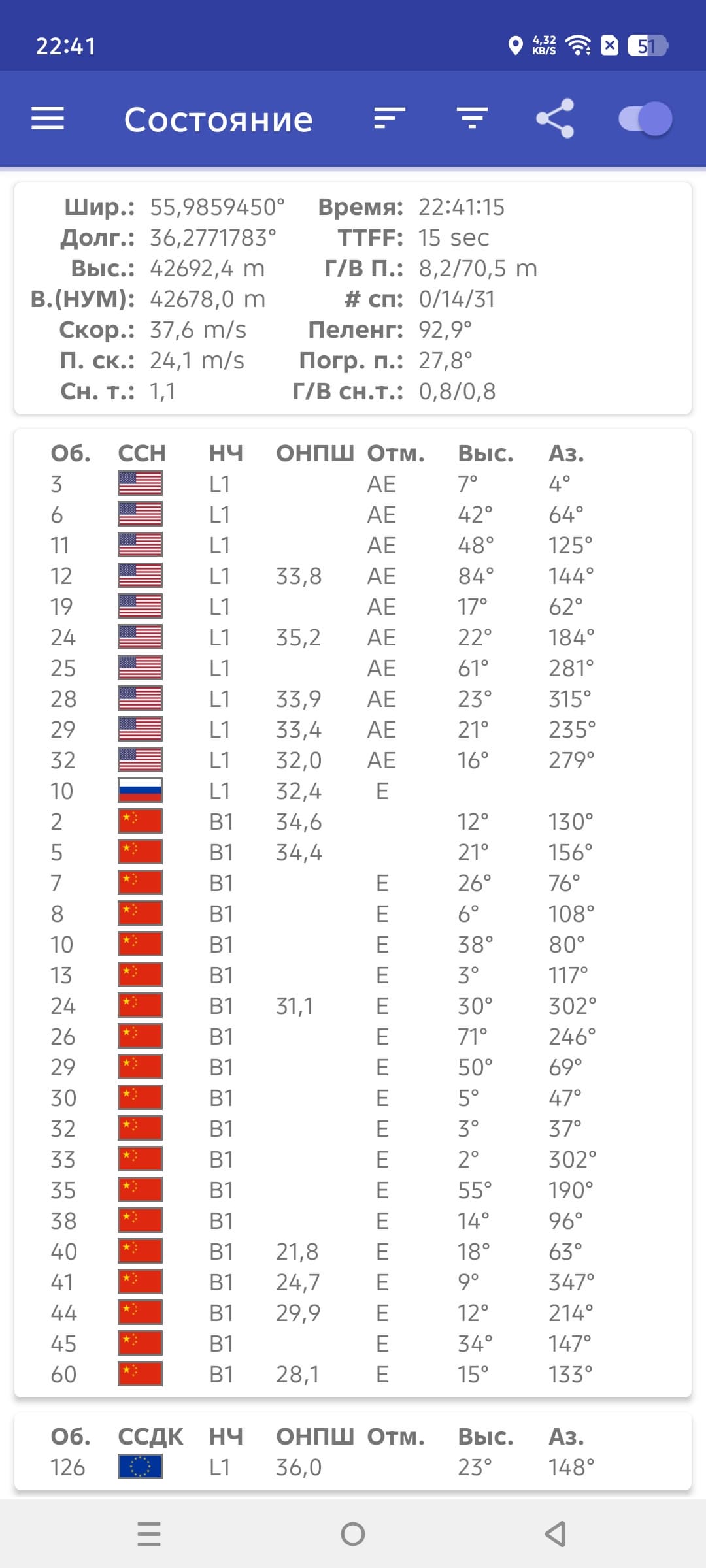 - GPS, Galileo, Глонасс, QZSS, BDS