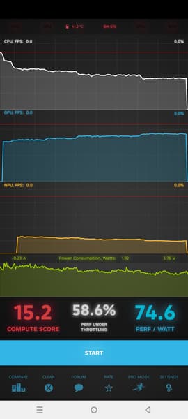 Тест на снижение производительности при нагреве мы проводим с помощью программы Burnout Benchmark, которая позволяет нагружать CPU, GPU и NPU.