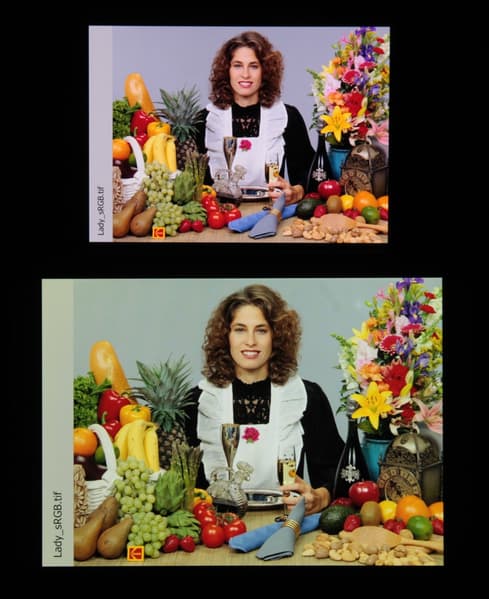 В случае изображения с профилем sRGB при выбранном профиле Оригинальный цвет и при выводе в ПО Галерея AI охват близок к sRGB: