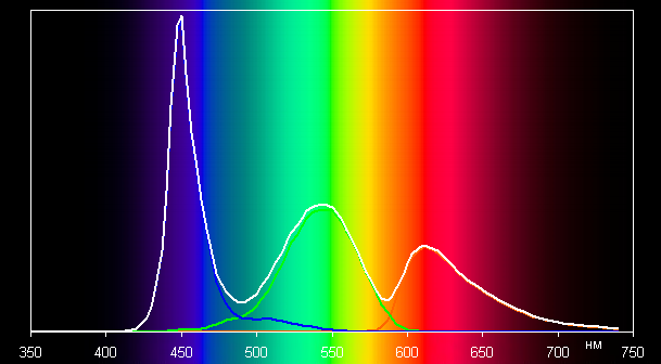 Спектры показывают, что светофильтры матрицы в умеренной степени подмешивают компоненты друг к другу: