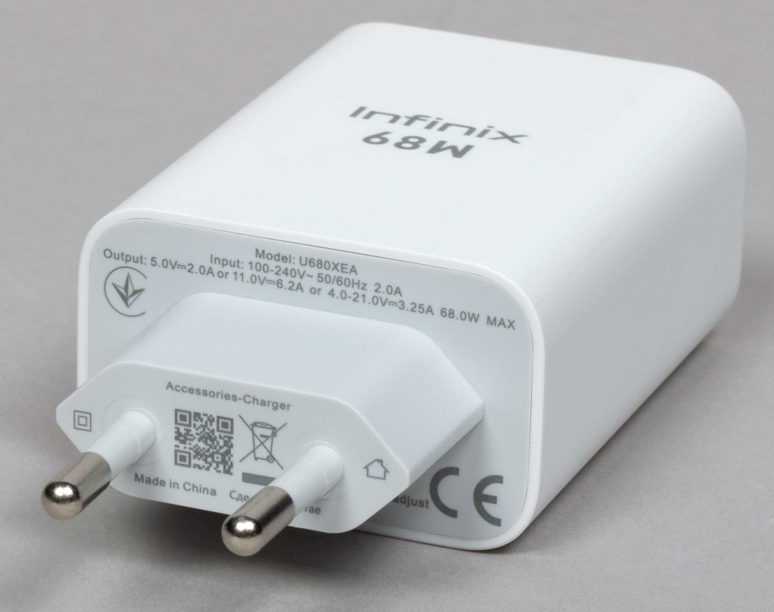 Комплект включает зарядное устройство с максимальной выходной мощностью 68 Вт, соединительный кабель, защитное стекло на экран и простейший твердый прозрачный защитный кожух.