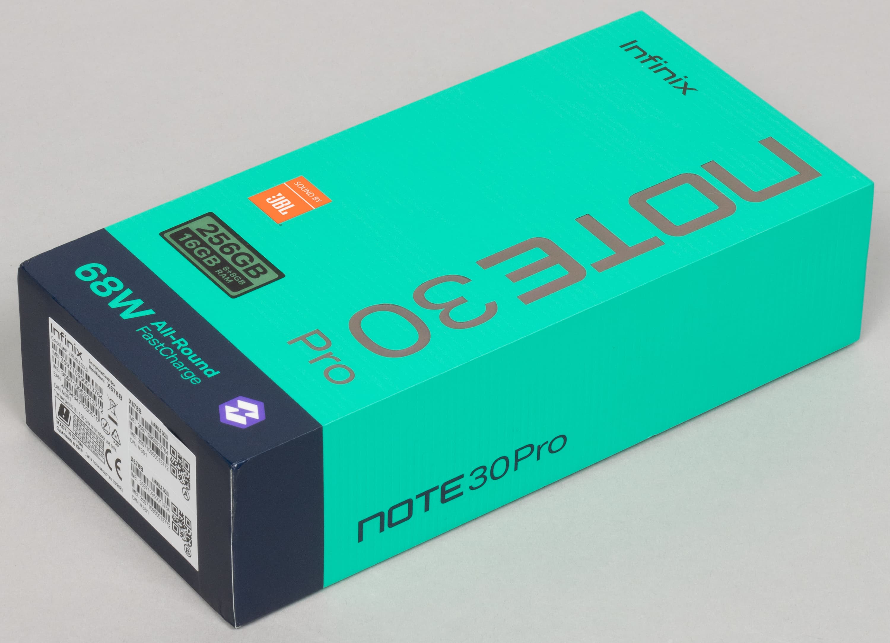 Смартфон Infinix Note 30 Pro поставляется в твердой упаковке с ярким оформлением.