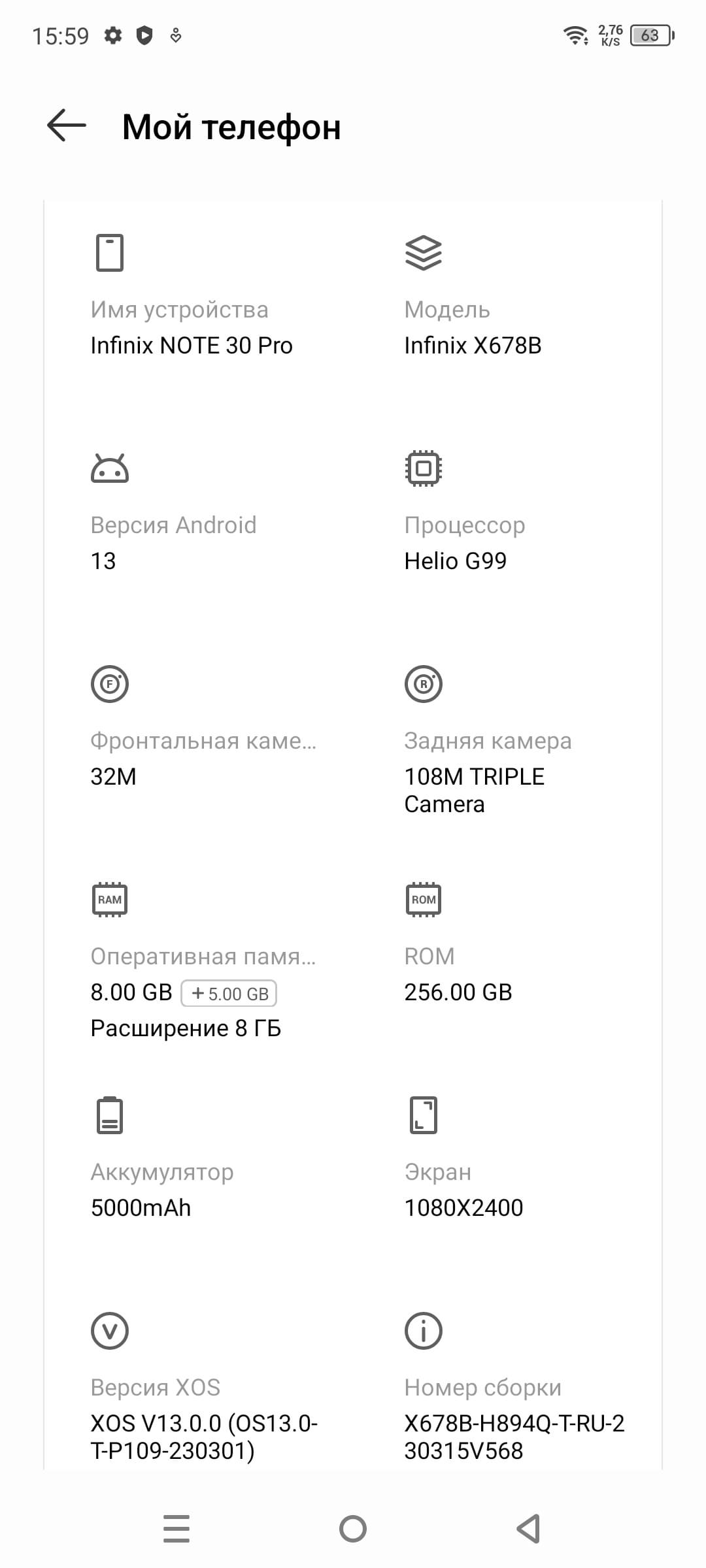 Основные характеристики Infinix Note 30 Pro (модель X678B)