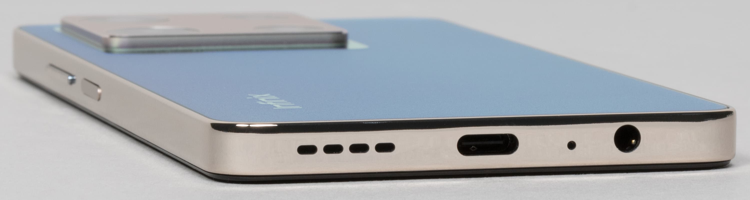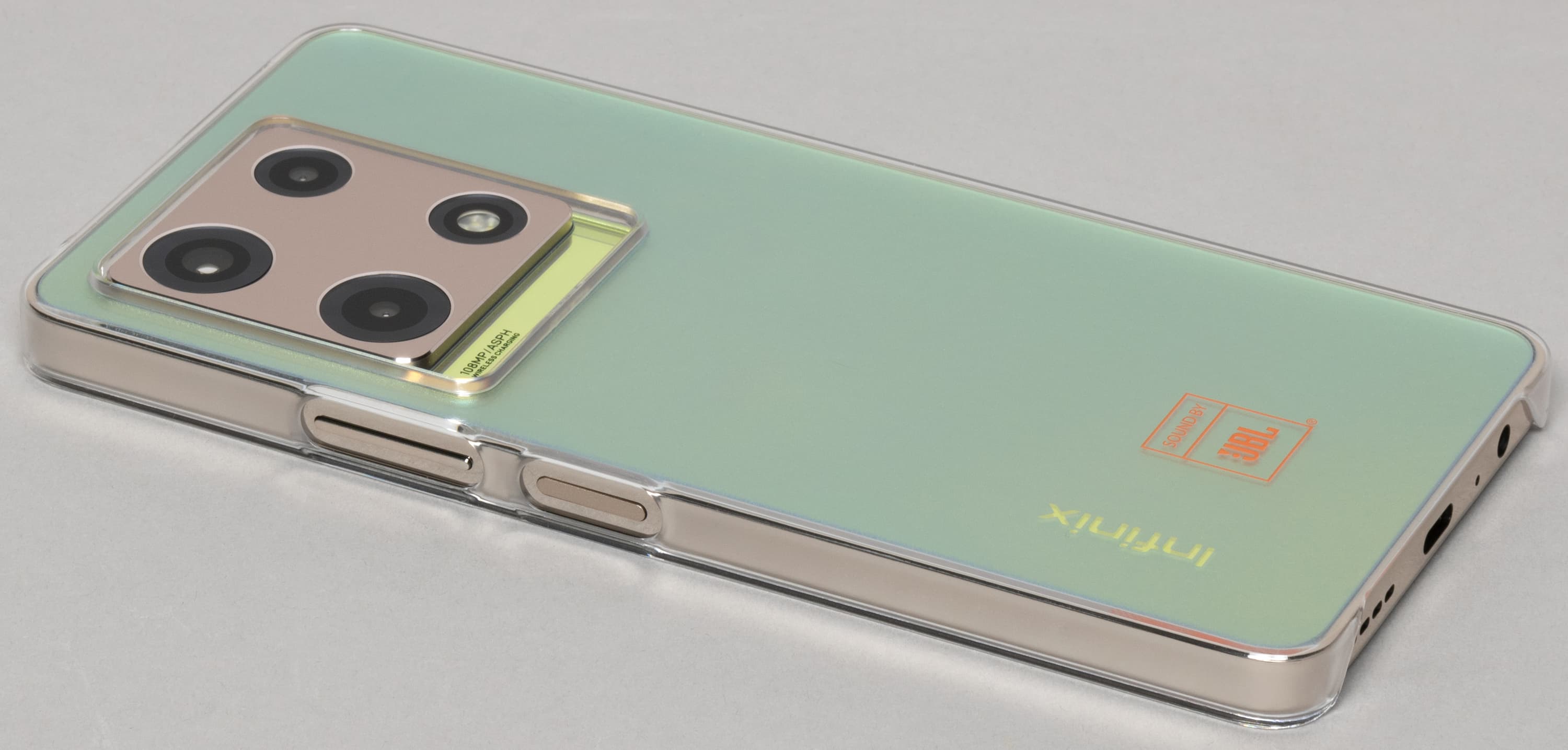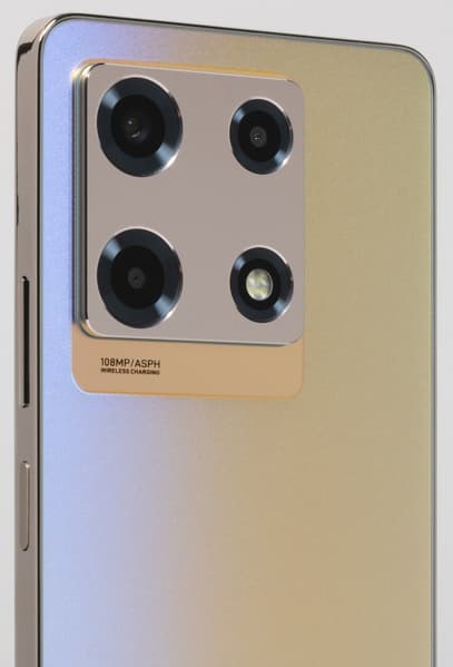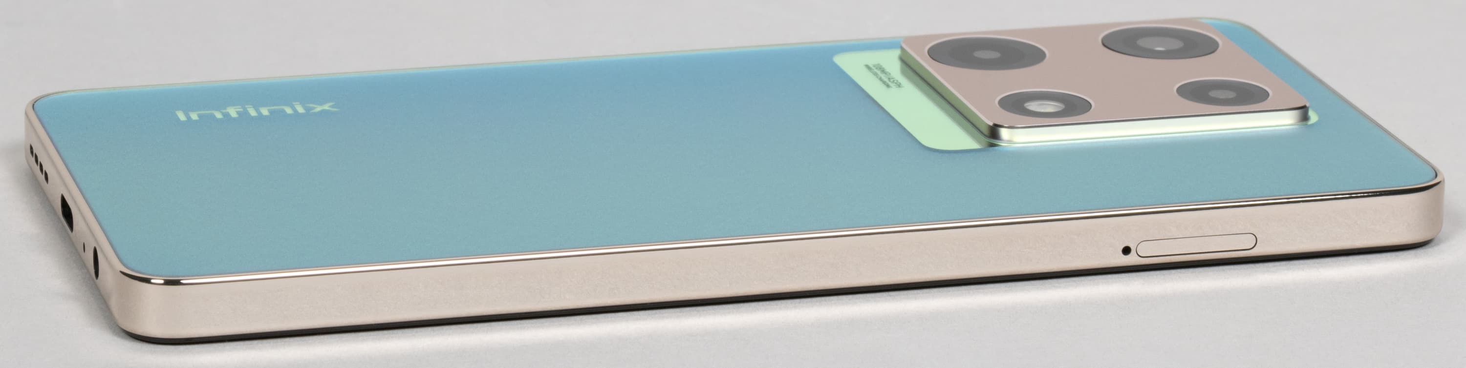 Смартфон Infinix Note 30 Pro выпускается в черном и золотистом вариантах, причем меняется цвет не только спинки, но и боковой рамки. Полноценной защиты от влаги и пыли у корпуса смартфона нет, но упомянута легкая защита от брызг по стандарту IP53.