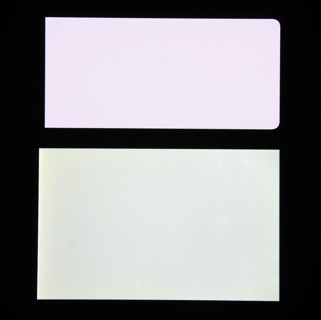 Яркость под углом у обоих экранов заметно уменьшается, но в случае смартфона падение яркости выражено гораздо меньше. В итоге при формально одинаковой яркости экран этого смартфона визуально выглядит гораздо более ярким (в сравнении с ЖК-экранами), так как на экран мобильного устройства часто приходится смотреть как минимум под небольшим углом.