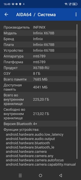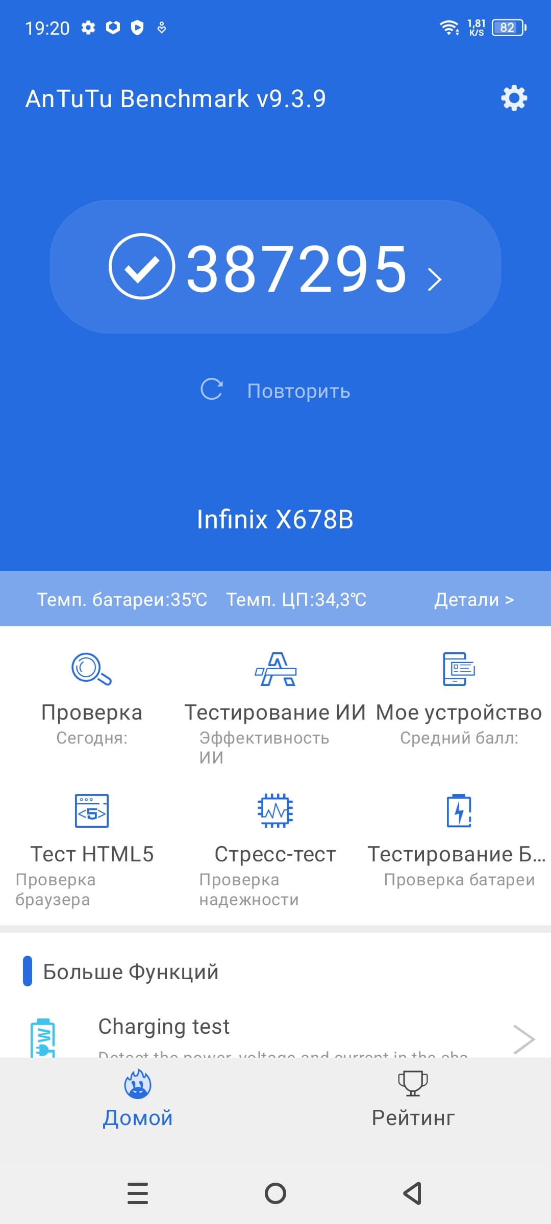 Эта платформа Mediatek используется давно и активно, в том числе в смартфонах Infinix, но к нынешнему моменту она уже явно устарела. В бенчмарке AnTuTu она набирает менее 400 тысяч баллов, это мало. Для плавной работы интерфейса ее мощи хватает, но вообще пора бы установить что-нибудь посвежее из серии Dimensity.