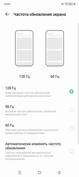 В настройках экрана можно включить режим с повышенной до 90 и 120 Гц частотой обновления: