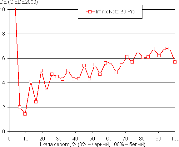 (Самые темные области шкалы серого в большинстве случаев можно не учитывать, так как там баланс цветов не имеет большого значения, да и погрешность измерений цветовых характеристик на низкой яркости большая.)