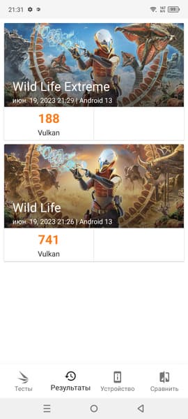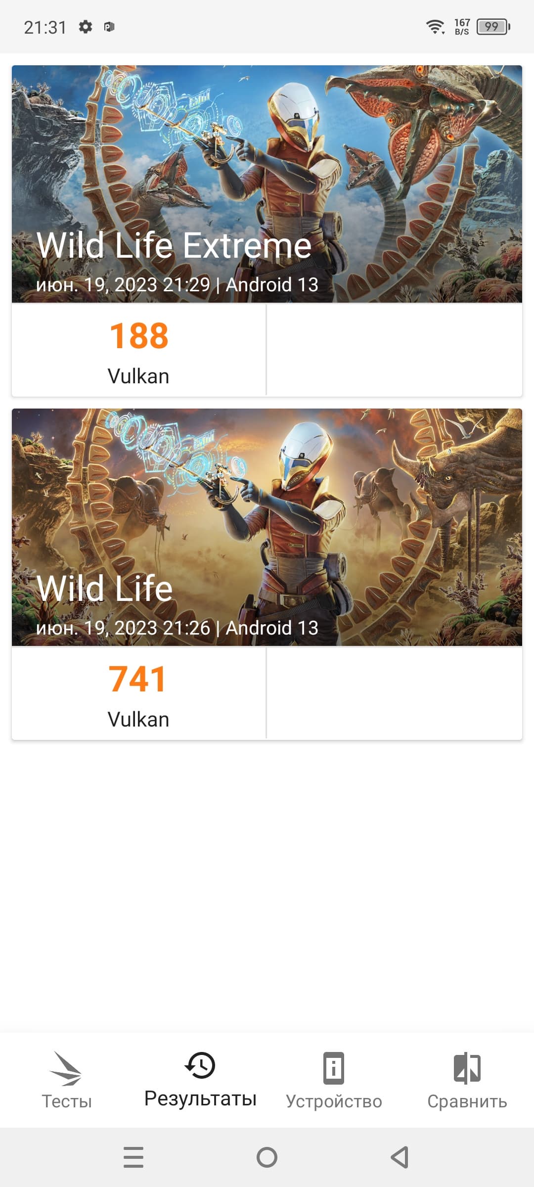 | 3DMark Wild Life Vulkan (больше — лучше) | 741 | 1255 | 4505 | 4186 | 2450 |