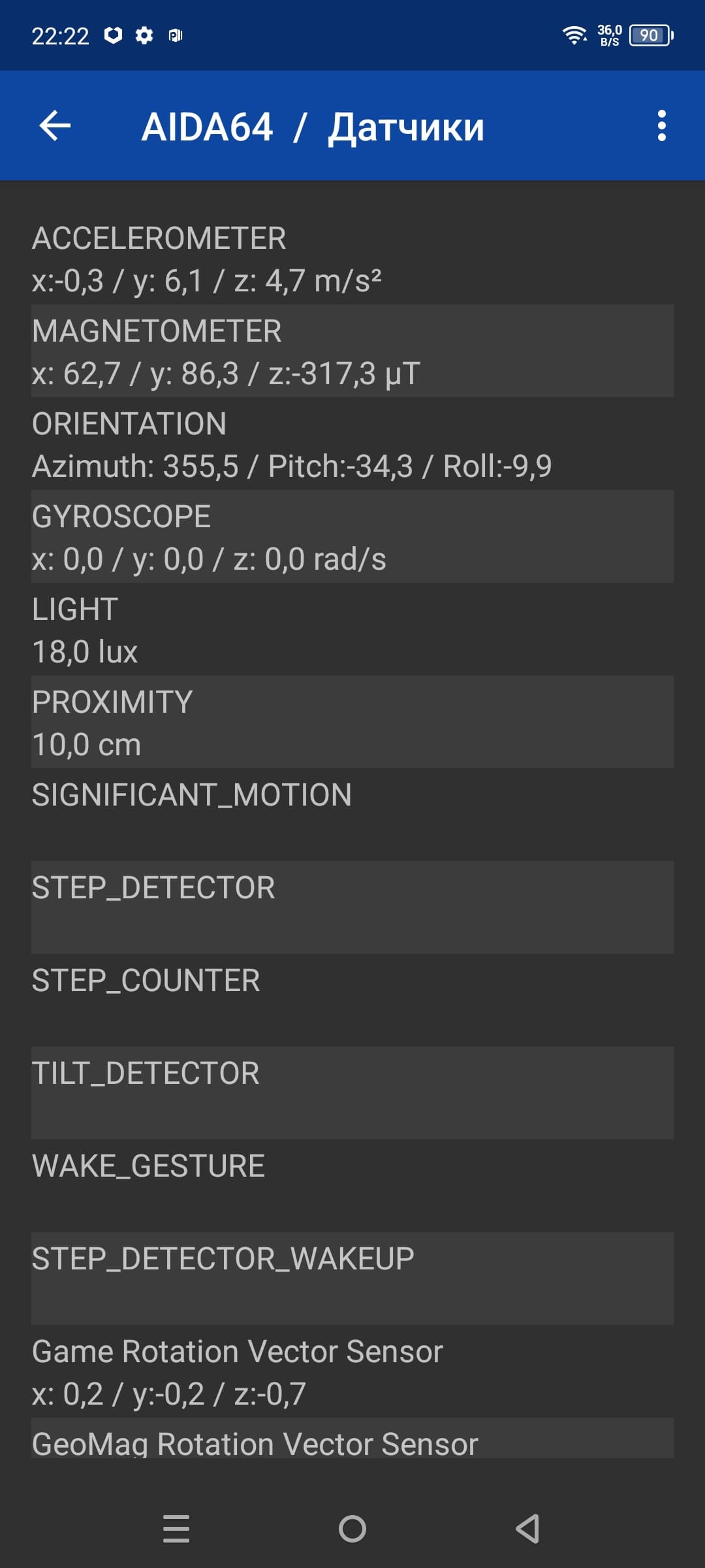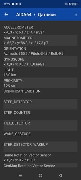 - Датчики приближения и освещения, магнитного поля, акселерометр, гироскоп