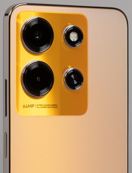 Смартфон Infinix Note 30i оснащен лишь одной снимающей камерой с сенсором 64 Мп и фазовой автофокусировкой. Апертура объектива — f/1,69. Остальные «глазки» — это «заглушки», в том числе в прямом смысле: у второго модуля разрешение сенсора 0,3 Мп, а за третьим и вовсе нет никакого модуля, это лишь имитация.