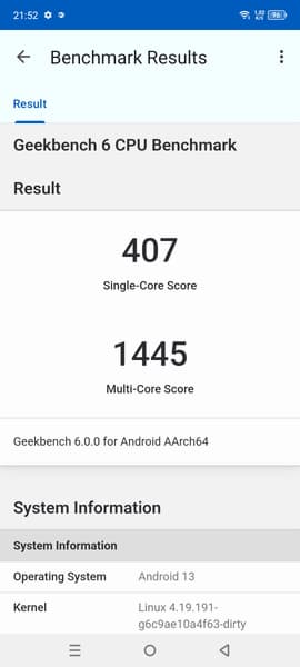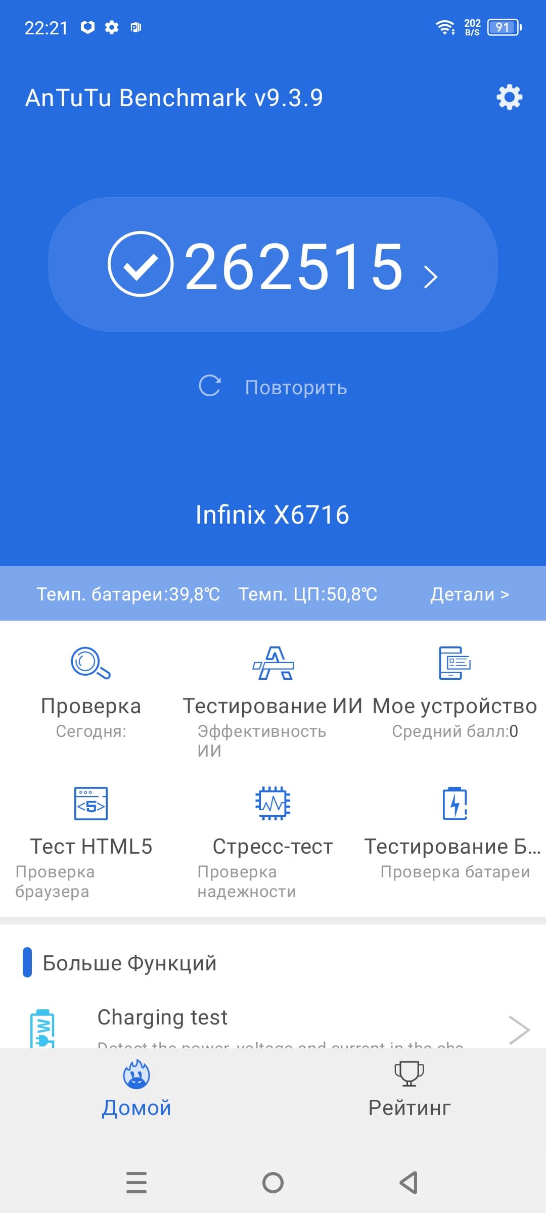 Платформа Mediatek Helio G85 производится по нормам техпроцесса 12 нм. Это устаревшее, неэкономичное и совсем слабое по теперешним меркам решение. Смартфон выдает в AnTuTu менее 300 тысяч баллов, это очень мало. Впрочем, для плавной работы интерфейса мощи SoC кое-как хватает, да и вообще в таком выборе платформы для бюджетного аппарата нет, к сожалению, ничего неожиданного: экономия.