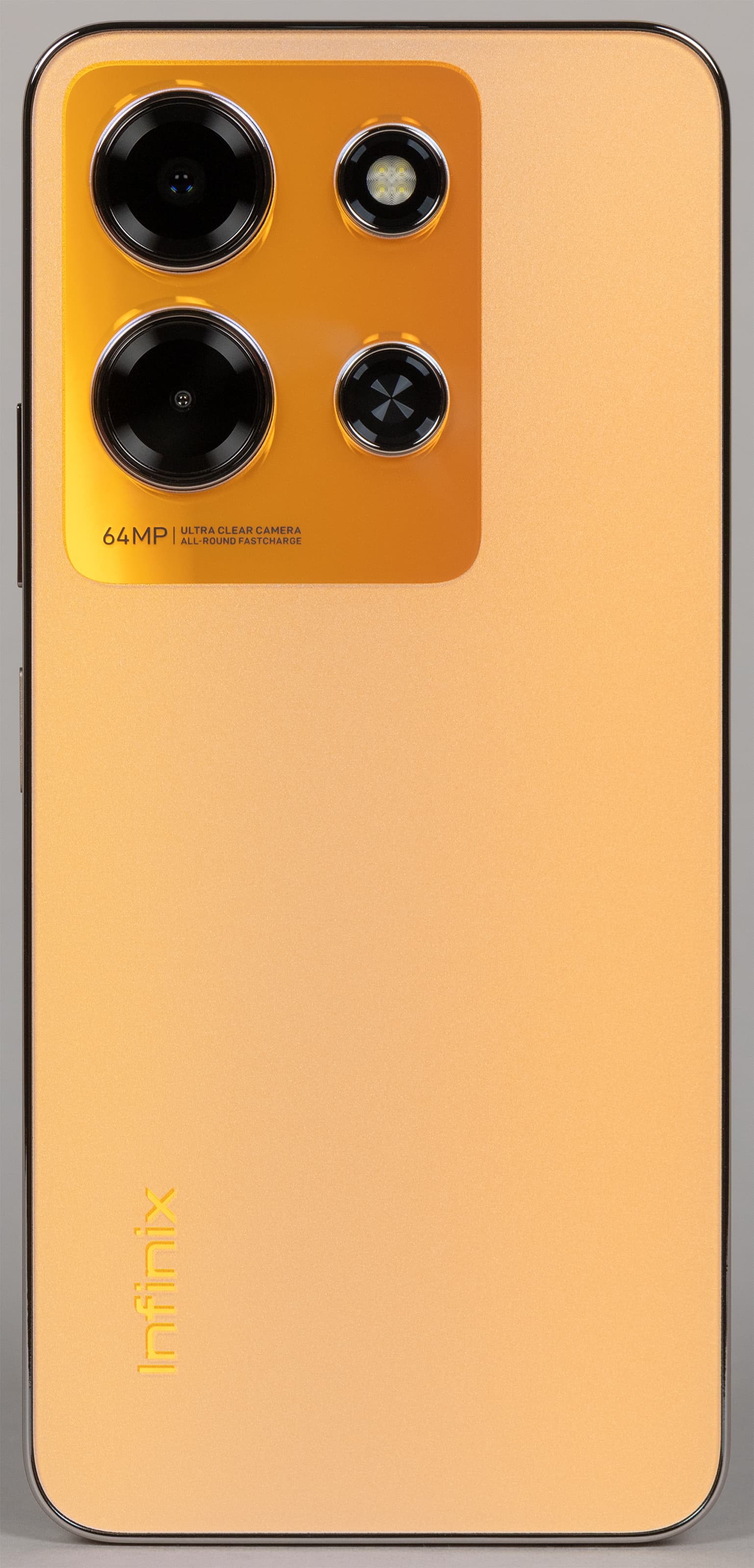 Смартфон Infinix Note 30i выпускается в черном, золотистом и зеленом вариантах окраса корпуса. При этом боковая рамка имеет цвет, соответствующий общему цвету корпуса. Полноценной защиты от влаги и пыли у корпуса смартфона нет, но имеется легкая защита от брызг по стандарту IP53.