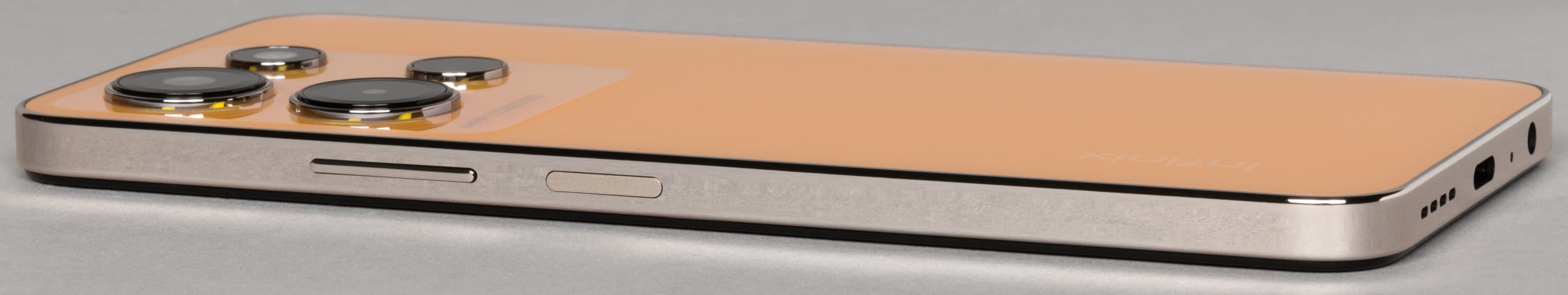 Infinix Note 30i по дизайну соответствует всем смартфонам новой линейки: они выполнены в актуальном прямоугольном айфоноподобном дизайне без обтекаемых форм. Здесь только плоские панели, широкие боковины и отчетливые переходы между ними.