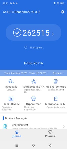 Смартфон Infinix Note 30i получил батарею со стандартным по сегодняшним меркам объемом 5000 мА·ч. В тестах аппарат продемонстрировал неплохую автономность, особенно в режиме чтения.